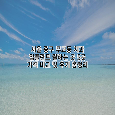 서울 중구 무교동에서의 임플란트 치료비용은 다른 지역과 비교하면 비슷하지만, 치과마다 가격차이는 있을 수 있어요. 다양한 임플란트 유형에 따른 평균 가격을 아래의 표로 정리해드릴게요.